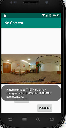 - Put your own image processing code in processImage(String thetaPicturePath) method, line 144