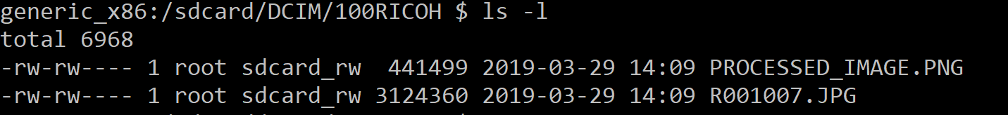 - Log into the AVD with adb shell to see the files in /sdcard/DCIM/100RICOH/
