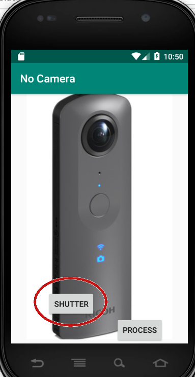 - If your app permissions are set properly, you will see the RICOH THETA image appear on the emulator screen. If the image does not appear, recheck step 6.