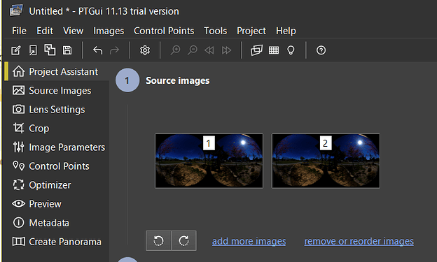 When you set the control points, the images are horizontal and you select the left sphere in image 1 and the right sphere in image 2?