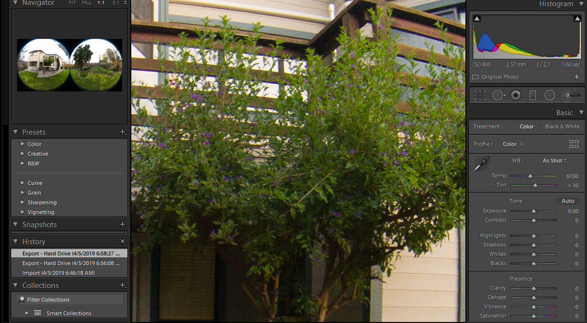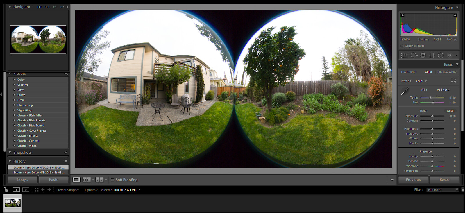 RICOH created a Lightroom Classic CC Plug-in to easily stitch the dual-fisheye RAW images into equirectangular.