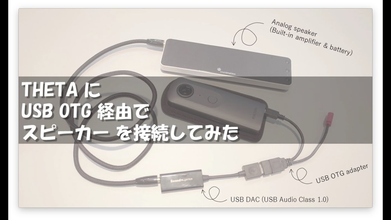 When playing with THETA, the volume was small, so I tried connecting the speaker to THETA via USB OTG.