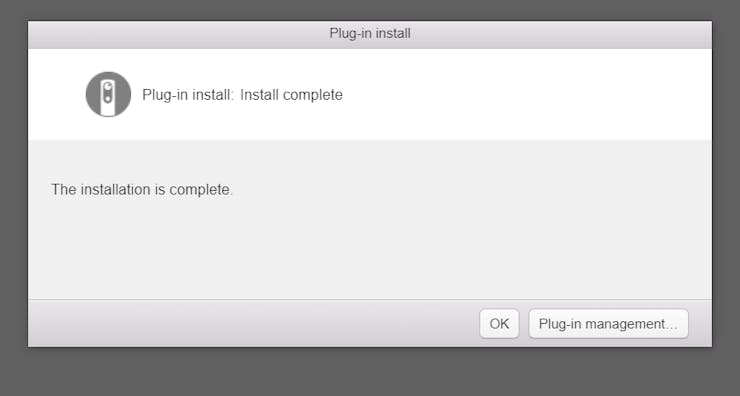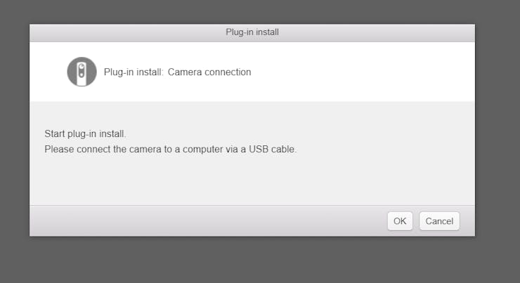 It will immediately open the official RICOH THETA desktop software, press “OK” to install the plugin.