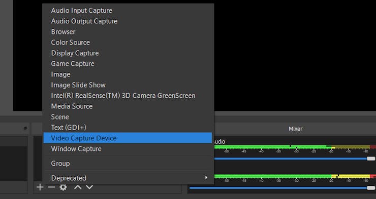 Connect the camera to the PC and configure the OBS to check that we have an image: