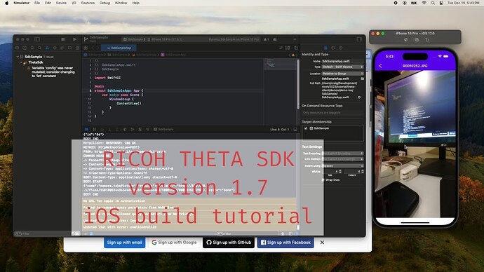 theta-client 1.7 was just released yesterday. I did a build on macOS Sonoma 14.2 for iOS using the demo-ios, which is the native build for iOS.