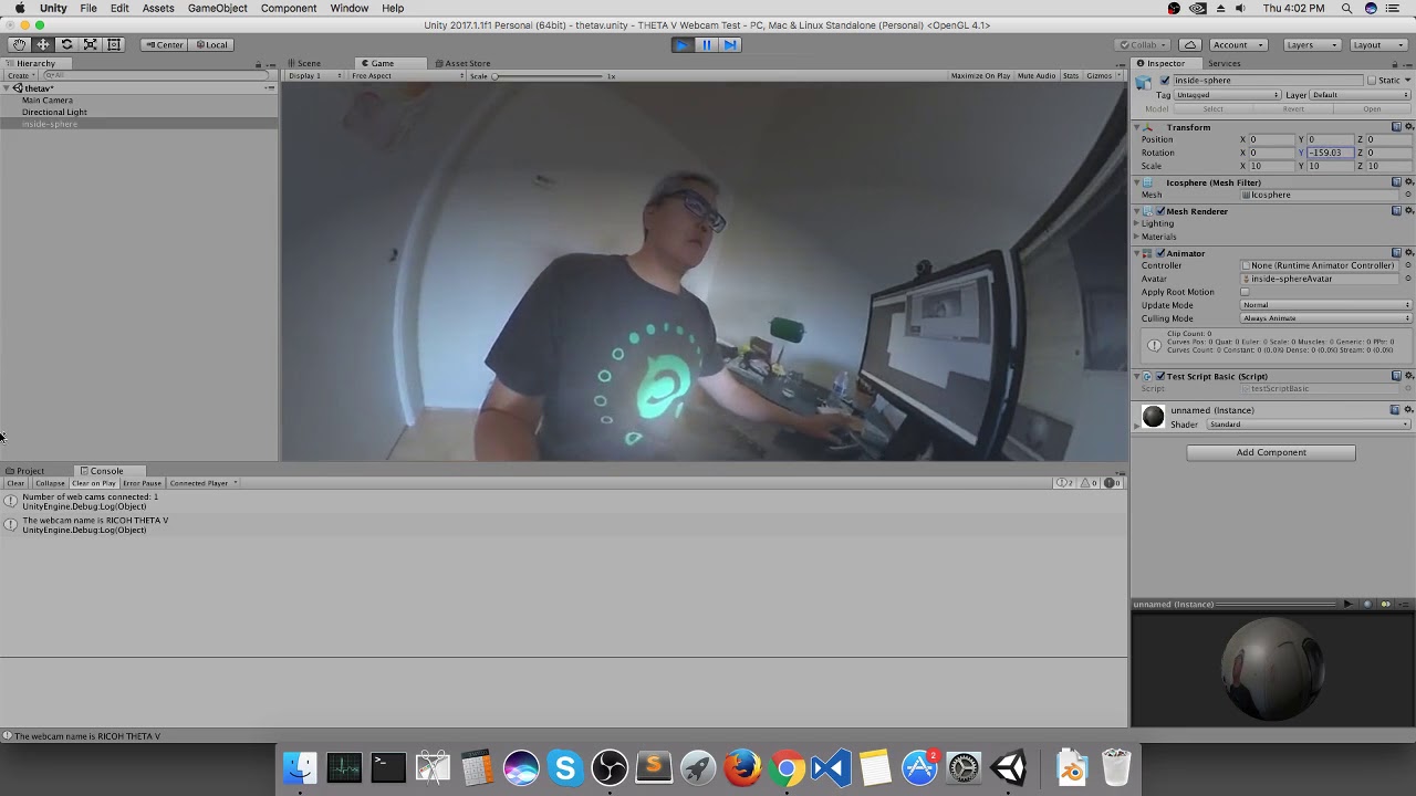This videos shows the Unity scripts. The registry hack was for the THETA S (previous generation THETA). We have not gotten it to work with the THETA V.