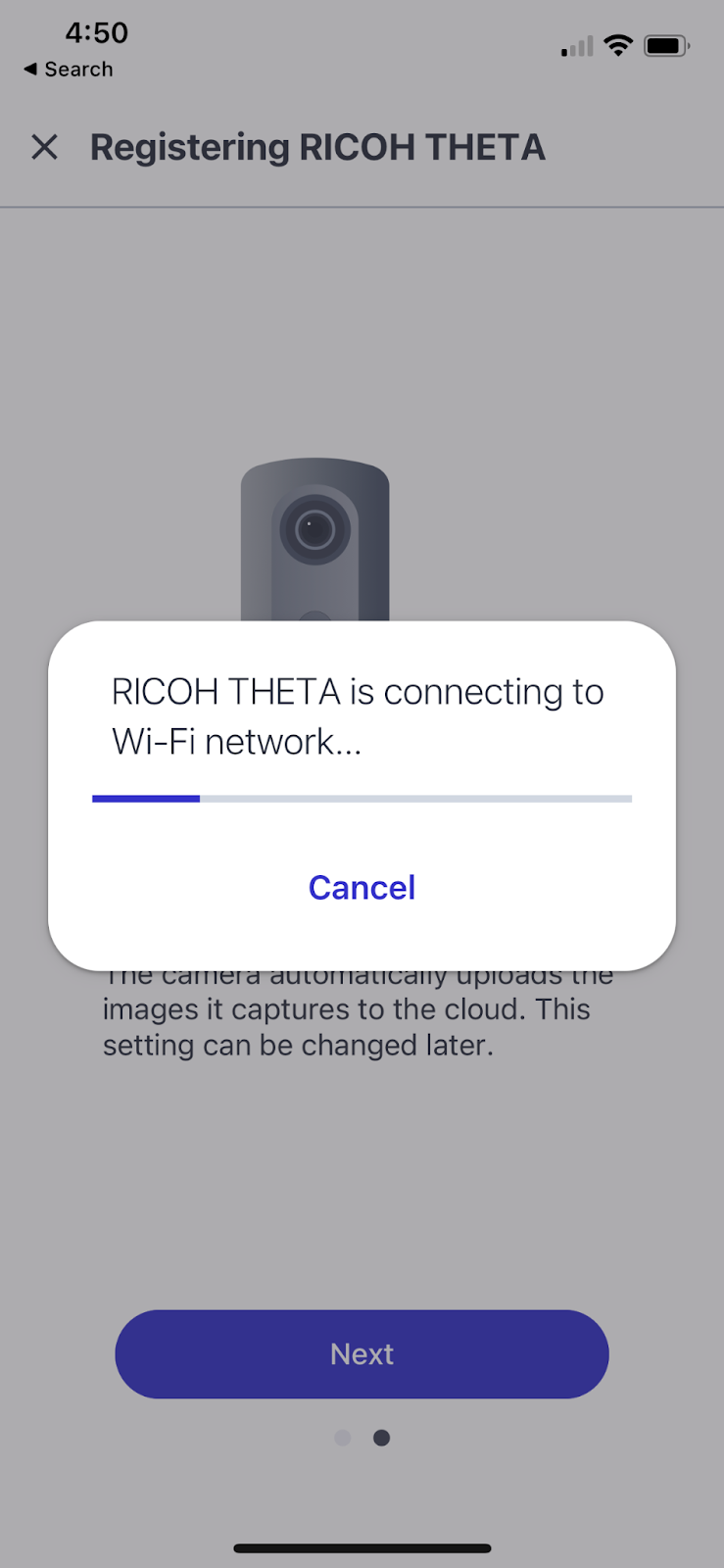 Screenshots from the setup, showing how it connects to the THETA and to the local network, all integrated well.