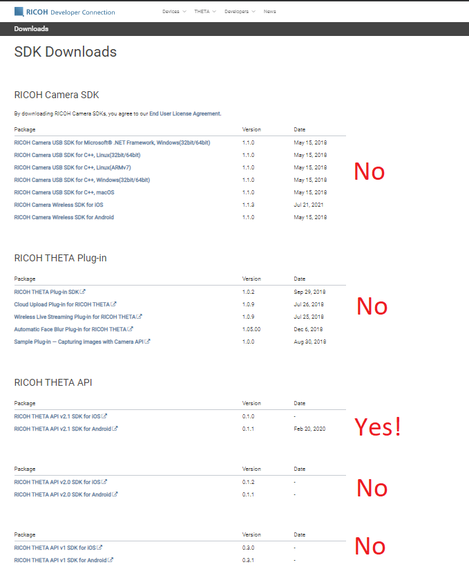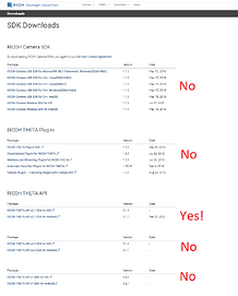 There is a RICOH Camera SDK. This is NOT what you want. The download page had multiple SDKs for different RICOH cameras. Make sure it says RICOH THETA clearly. You want RICOH THETA API v2.1 SDK for iOS.