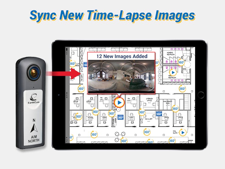 Users of EarthCam’s VR Site Tour photography documentation app now have the ability to create short-term time-lapse videos with its all new plugin for Ricoh Theta 360° cameras. Quickly document jobsite progress and add the unique animated content to site plans for further insight into the project process. This site plan enhancement is an exciting and unique addition to VR Site Tour’s current collection of geo-tagged photography and video content.