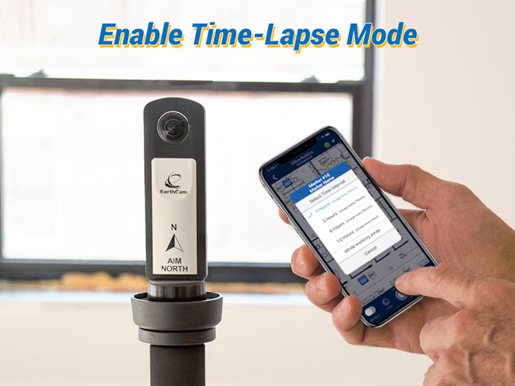 Designed specifically to be used in conjunction with EarthCam’s VR Site Tour app, the plugin creates a “hands-free approach”, allowing users to set their Ricoh Theta camera to take photos at scheduled intervals throughout the day. This plugin is perfect for documenting interiors and eliminates the need to continuously trigger the camera to take photos. Simply select the total period of time you would like photos to be captured for – and the app does it all for you! With the Advanced Mode, leverage the existing Wi-Fi network at your location, giving you free range to leave the jobsite without interrupting progress documentation. EarthCam’s service automatically converts a day’s worth of progress into quick, easy-to-share 10-second time-lapse video bursts and syncs them directly to site plans and BIM 3D models.